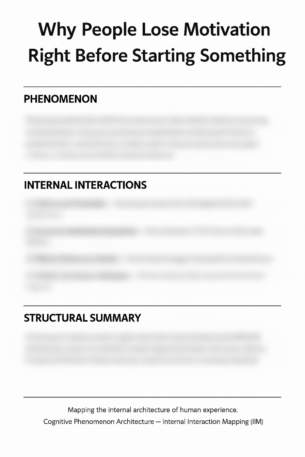 This Cognitive Phenomenon Architecture Collection explains the internal mechanics behind procrastination, hesitation, emotional overload, and the collapse of motivation. It breaks down why people struggle to start tasks, why meaning increases resistance, why decisions trigger paralysis, and why regulation systems shut down when the stakes feel high. Each map translates internal cognitive architecture into simple, accessible explanations without academic language.