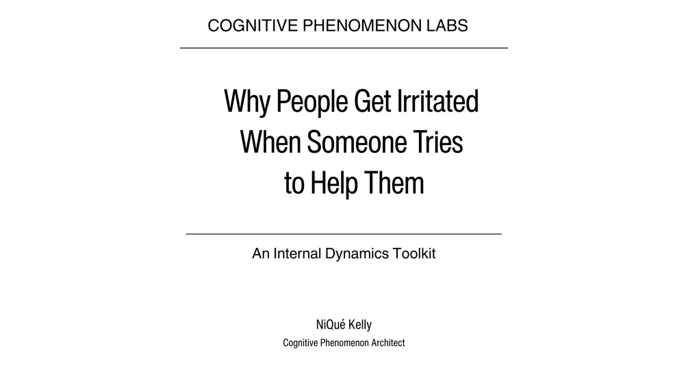 Instead of framing irritation as ingratitude or ego, this toolkit maps how help can register as identity interference—something that destabilizes independence, authorship, and self-concept. Designed in the PhenomenonLabs institutional style, it isolates repeatable internal dynamics without therapeutic framing or prescriptive advice.