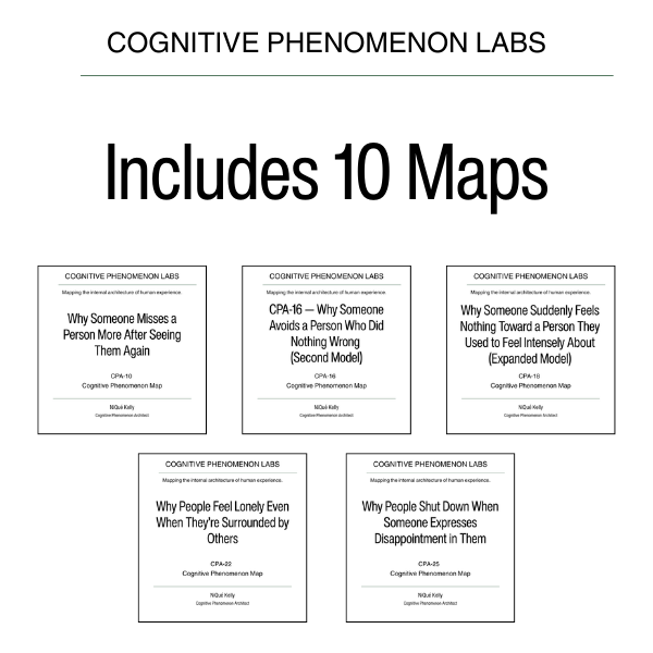 This Cognitive Phenomenon Architecture Collection examines the deep internal structures that shape relationships, connection, distance, attachment, and emotional shifts. It explains why people pull close, withdraw, long for someone, suddenly feel nothing, avoid others, and experience rapid emotional changes. Each map breaks down the identity, perception, memory, and nervous-system patterns behind these behaviors in clear, accessible language.