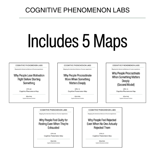 This Cognitive Phenomenon Architecture Bundle examines the internal architecture behind procrastination, motivation collapse, overthinking, and avoidance patterns. It explains why people lose motivation at the starting line, delay tasks that matter most, struggle to rest without guilt, and overthink important conversations. Each map breaks down emotional saturation, identity exposure, and nervous-system overload in clear, accessible language.
