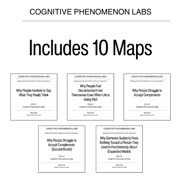 This Cognitive Phenomenon Architecture Collection explores the internal architecture of identity, self-perception, emotional coherence, and the struggle to feel aligned with oneself. It explains why honesty feels risky, why people disconnect from themselves even when life is good, why compliments are difficult to receive, and why emotional resonance can suddenly disappear. Each map breaks down identity mechanics, perception gaps, emotional calibration issues, and internal misalignment in simple, accessible language.