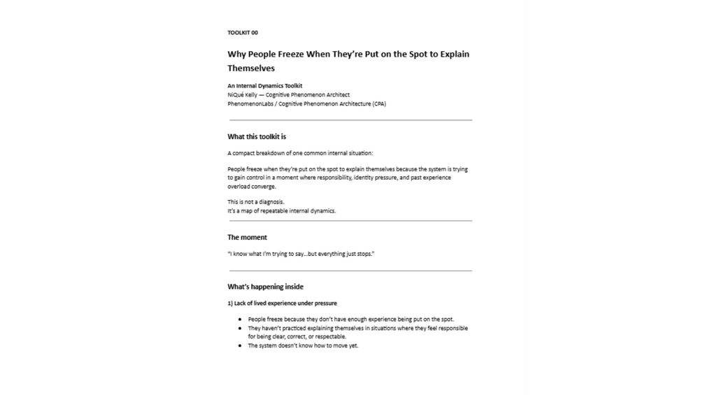 Includes: • Clear phenomenon framing • Six internal dynamics • Internal sequence mapping • Key mechanism explanation • Self-check prompts • Micro-tools for investigation (not advice) • Institutional footer • CPA formatting standards